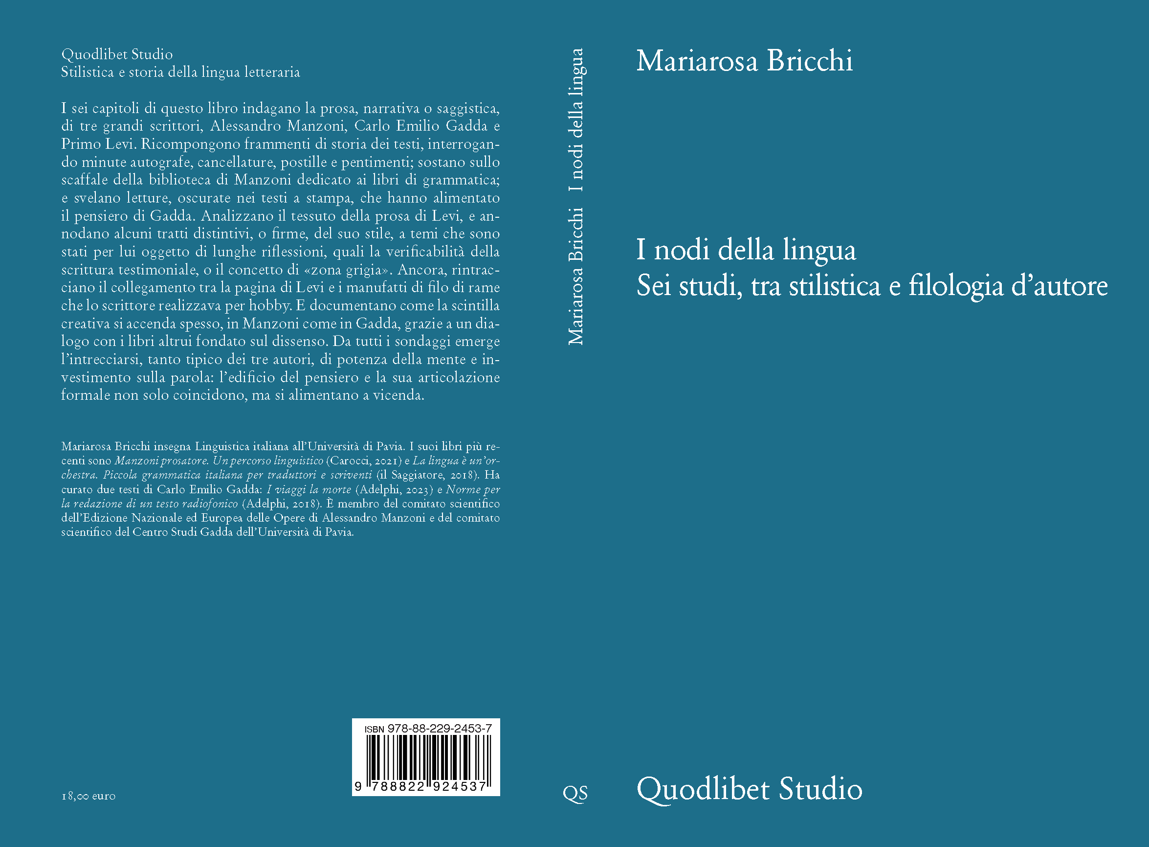 Si segnala la recente pubblicazione del volume I nodi della lingua (Quodlibet, 2025), a cura di Mariarosa Bricchi, che include un saggio dedicato alla prosa di Carlo Emilio Gadda, di cui ricostruisce storia e genesi attraverso l'indagine di carte autografe.
